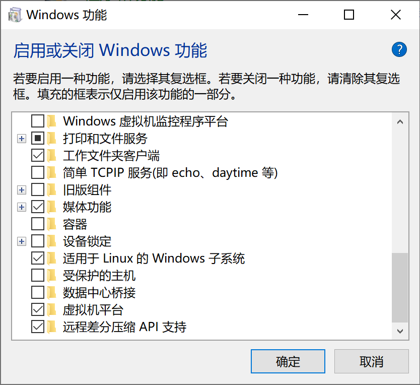要使用wsl2需要先在控制面板中開啟wsl功能: