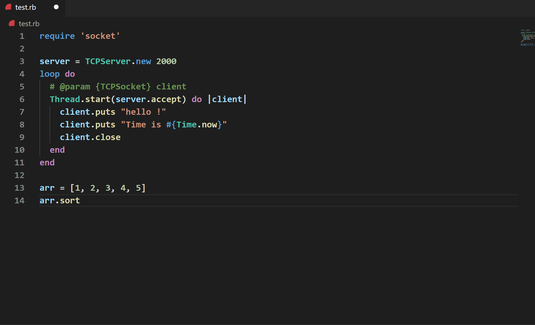 server = TCPServer.new 2000