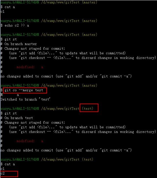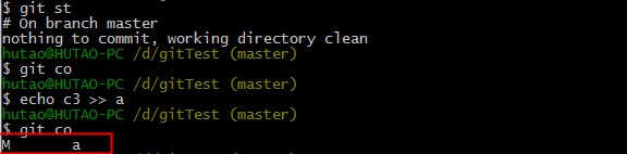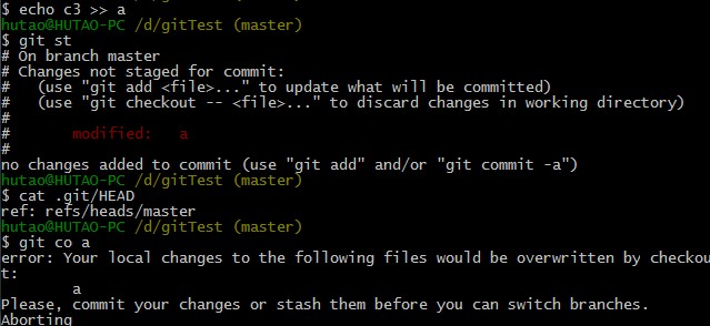 我們身處master分支上,并且沒有任何改動,這時候git checkout沒有任何輸出。然后,我們給a文件添加內(nèi)容“c3”,然后再git checkout一下,git就會提示a文件有修改,是不是很簡單?