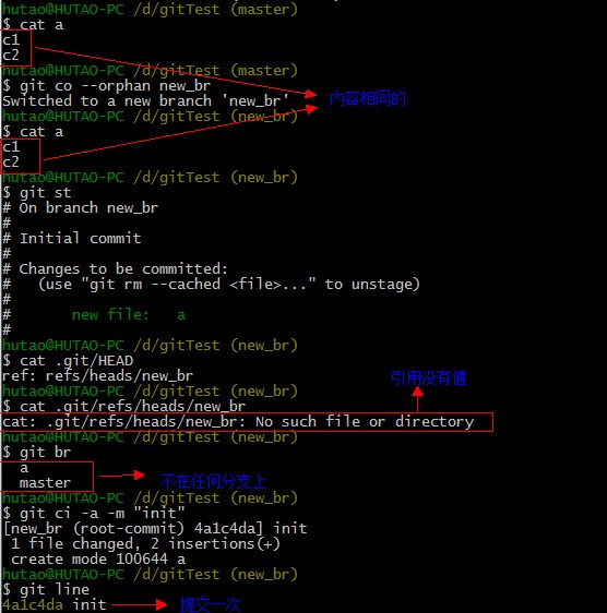 是的,假如你的某個分支上,積累了無數(shù)次的提交,你也懶得去打理,打印出的log也讓你無力吐槽,那么這個命令將是你的神器,它會基于當(dāng)前所在分支新建一個赤裸裸的分支,沒有任何的提交歷史,但是當(dāng)前分支的內(nèi)容一一俱全。新建的分支,嚴(yán)格意義上說,還不是一個分支,因為HEAD指向的引用中沒有commit值,只有在進(jìn)行一次提交后,它才算得上真正的分支。還等什么呢?趕緊試試!