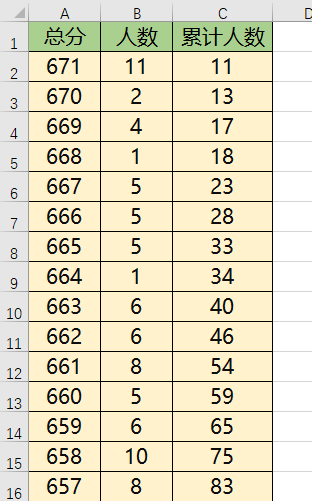 # 數(shù)據(jù) 對(duì)應(yīng) 每個(gè)分?jǐn)?shù)的人數(shù) 表