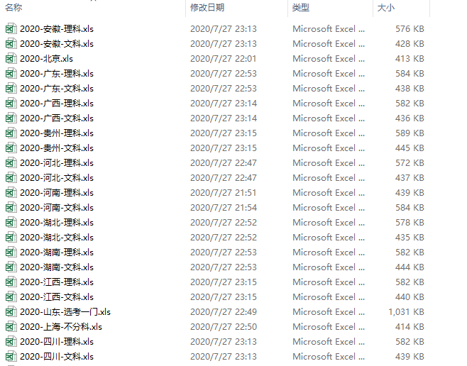 其中北京上海不分科,山東是選擇一門考試進(jìn)行考核, 所以 一共23個(gè)數(shù)據(jù)表,后續(xù)的話,我盡量將數(shù)據(jù)也一并上傳了