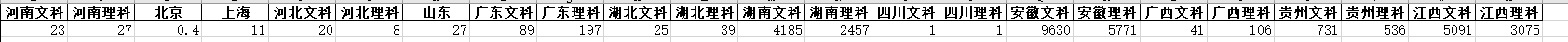 res_name = {'河南文科', '河南理科', '北京', '上海', '河北文科', '河北理科', '山東', '廣東文科' '廣東理科' '湖北文科', '湖北理科', '湖南文科', '湖南理科', '四川文科', '四川理科', '安徽文科', '安徽理科', '廣西文科', '廣西理科', '貴州文科', '貴州理科', '江西文科', '江西理科'};
