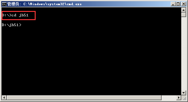 進(jìn)入D盤根目錄后,在光標(biāo)處輸入 cd jb51 ;,按Enter就可以進(jìn)入目標(biāo)文件夾