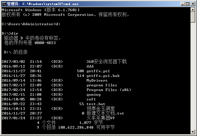 2.進(jìn)入某個(gè)磁盤,直接盤符代號:如D:,不用CD 命令切換