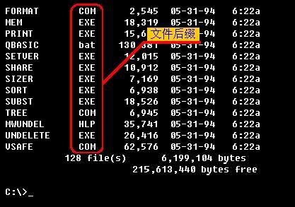 其中凡后綴為exe、com或bat的文件都是可以直接執(zhí)行的。這些以exe為后綴的文件叫可執(zhí)行文件;以com為后綴的文件叫命令文件;以bat為后綴的文件叫批處理文件。如果我們要執(zhí)行這些文件,只需在提示符下敲入文件基本名然后回車即可,不需輸入文件后綴。