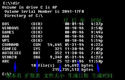 看上圖,第一列的就是“文件基本名”,第二列的是“文件擴(kuò)展名”。注意:在用dir命令顯示文件列表時,文件基本名和擴(kuò)展名之間并無“.”分隔符,但你在輸入完整的文件名時必須輸入它。