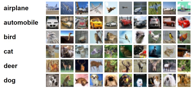 CIFAR-10 是由 10 類不同的物品組成的 6 萬張彩色圖片的數(shù)據(jù)集. 其中 5 萬張為訓(xùn)練集, 1 萬張為測試集.