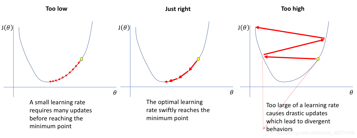 簡單的來說, 如果學(xué)習(xí)率越大, 我們訓(xùn)練的速度就越大, 但找到最優(yōu)解的概率也就越小. 反之, 學(xué)習(xí)率越小, 訓(xùn)練的速度就越慢, 但找到最優(yōu)解的概率就越大.