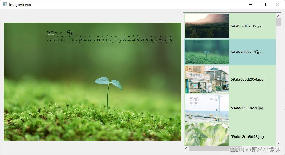 左邊區(qū)域用QLabel加載圖像,右邊區(qū)域是圖片縮略圖列表,點(diǎn)擊縮略圖,可以在左邊查看大圖。