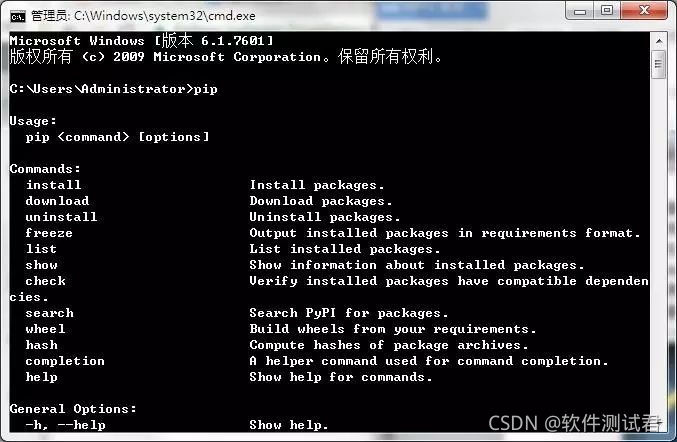 安裝完成后在CMD命令行輸入python和pip驗(yàn)證是否安裝妥當(dāng),如果不提示“不是內(nèi)部或外部命令”則說(shuō)明安裝正常,否則可能是沒(méi)有添加到環(huán)境變量。