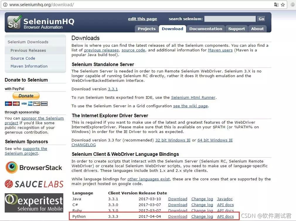 除了上面通過(guò)pip安裝外也可以直接下載python的selenium安裝包,可以在selenium官網(wǎng)(http://www.seleniumhq.org/download/)下載,下載后通過(guò)在命令行用python setup.py install安裝,這里不介紹這種方法了。