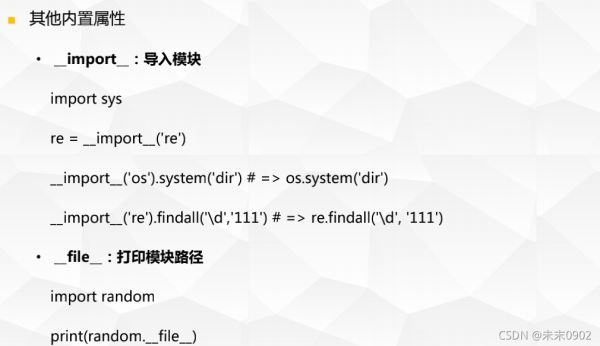 表示私有對(duì)象,不能用from xxx import導(dǎo)入包/模塊以雙下劃線開(kāi)頭和結(jié)尾的(foo)