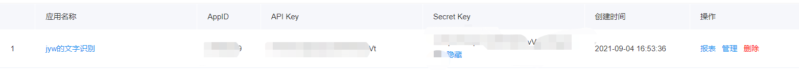 先注冊百度AI,獲得ID和密鑰。注冊方法可參考:注冊方法 只需走到 “1.6 獲取密鑰” 即可。然后記錄下自己的APP_ID、API_KEY、SECRET_KEY,就可以開始了。
