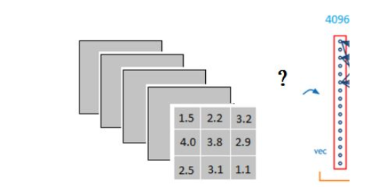 我們也可以把全連接層的過程看做一個卷積過程,例如某個網(wǎng)絡(luò)在經(jīng)過卷積、ReLU激活后得到3x3x5的輸出,然后經(jīng)過全連接層轉(zhuǎn)換成1x4096的形式: