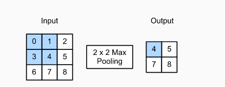 輸出的張量高度為2,寬度為2,這四個元素為每個池化窗口中的最大值(stride=1,padding=0):