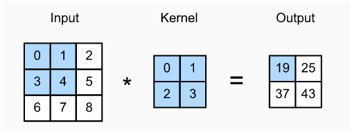 二維的互相關(guān)運算。陰影部分是第一個輸出元素,以及用于計算這個輸出的輸入和核張量元素: 0 x 0 + 1x1 + 3x2 +4x3 = 19。由此可見互相關(guān)運算就是一個乘積求和的過程。在二維互相關(guān)運算中,卷積窗口從輸入張量的左上角開始,從左到右、從上到下滑動。這里我們設(shè)置步長為1,即每次跨越一個距離。當(dāng)卷積窗口滑到新一個位置時,包含在該窗口中的部分張量與卷積核張量進行按元素相乘,得到的張量再求和得到一個單一的標(biāo)量值,由此我們得到了這一位置的輸出張量值。 【我們這里頻繁提到了張量,張量(Tensor)是一個多維數(shù)組,它是標(biāo)量、向量、矩陣的高維拓展?!?/p>