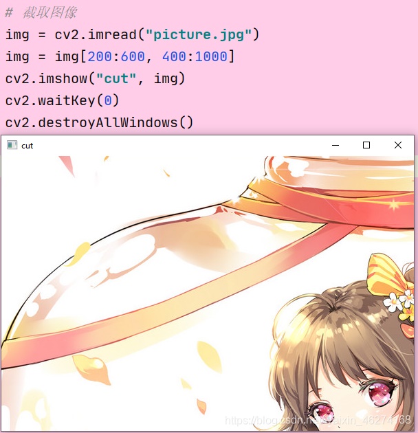 您可能感興趣的文章:- OpenCV半小時掌握基本操作之圖像裁剪融合