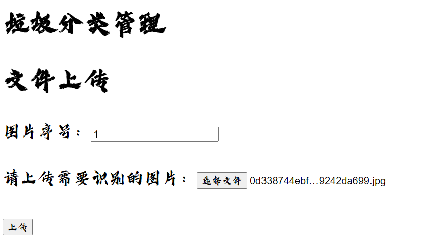 請(qǐng)上傳需要識(shí)別的圖片:input type = "file" name = "pic"/>br/>br>