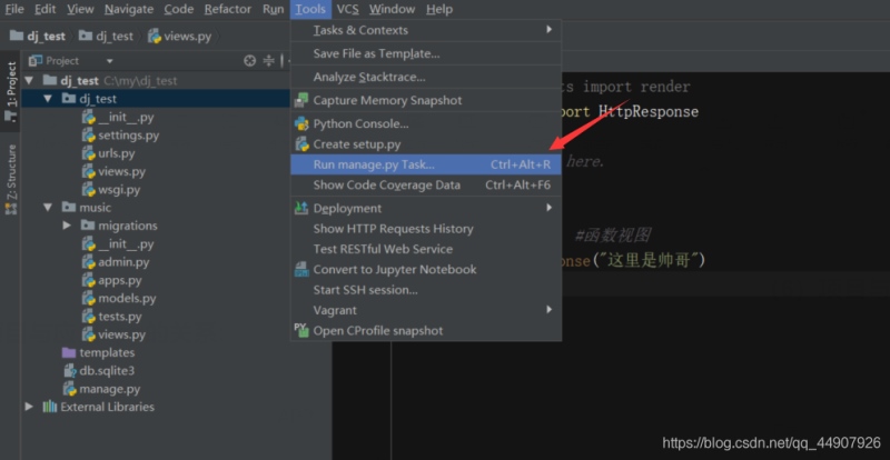 1.在項(xiàng)目目錄下創(chuàng)建視圖文件views.py文件(做的是處理業(yè)務(wù)邏輯的操作)