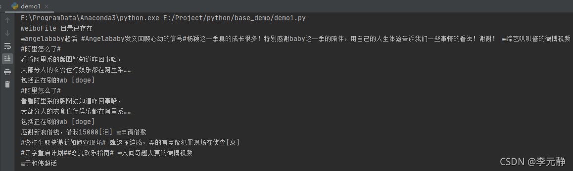 上面代碼主要的功能在for-in循環(huán)之中。這里,我們通過(guò)先獲取文本數(shù)據(jù)保存之后,在滑動(dòng)屏幕獲取其他的微博數(shù)據(jù)。