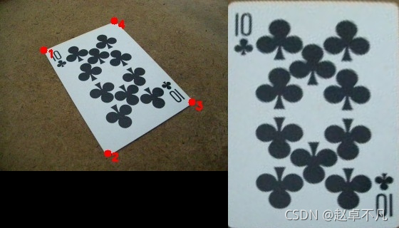 首先選擇四個(gè)目的圖像上的點(diǎn),然后調(diào)用openv函數(shù)進(jìn)行透視變換,代碼如下: