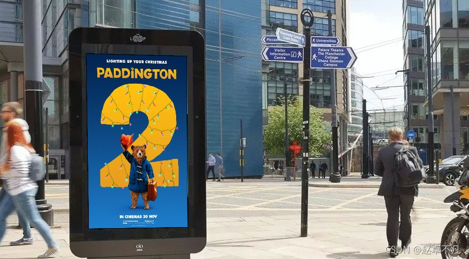 我們?cè)趯?shí)際應(yīng)用中,可以使用透視變換來(lái)替換廣告牌中對(duì)應(yīng)的背景圖,結(jié)果如下:
