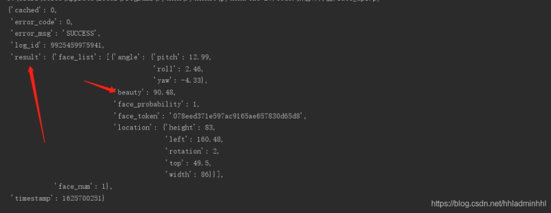 那我們要的打分顏值分?jǐn)?shù)是哪個(gè)呢?提供返回結(jié)果參數(shù),可以看到里面有個(gè)beauty就是我們要的顏值分?jǐn)?shù)。