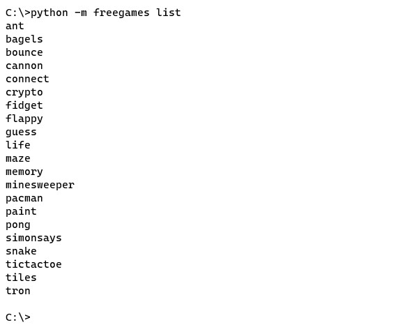 安裝完之后我們可以使用 python -m freegames list 來查看所有的游戲列表