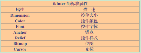 tkinter 的標(biāo)準(zhǔn)屬性是所有控件的共同屬性,如下表所示: