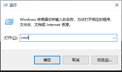 win + R(或開(kāi)始“菜單”>運(yùn)行>輸入cmd),輸入cmd,打開(kāi) 命令行窗口;