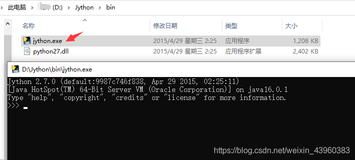 打開(kāi) Jython 的安裝目錄的 bin 目錄,運(yùn)行 jython 程序