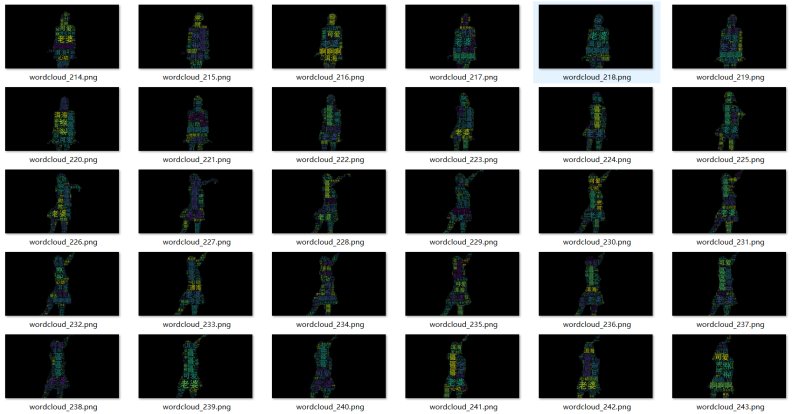經(jīng)過實踐發(fā)現(xiàn),這個視頻完整分離出圖片來有 3347 張,本文截取 800 張圖片來做詞云。