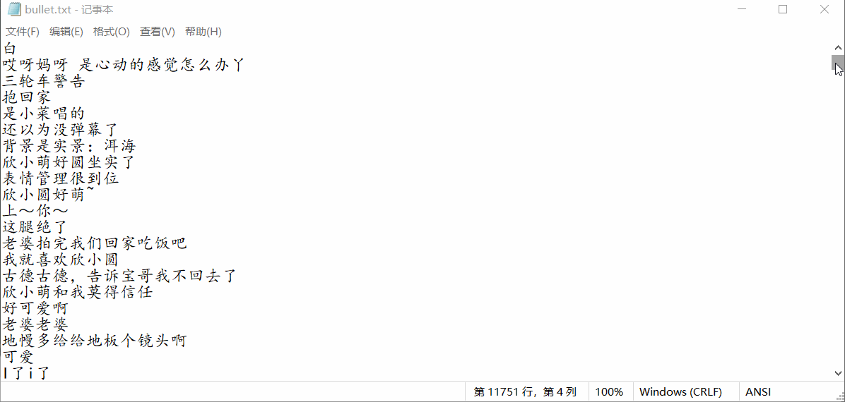 print(f'用時:{delta}s -----------> 彈幕數(shù)據(jù)成功保存到本地txt')