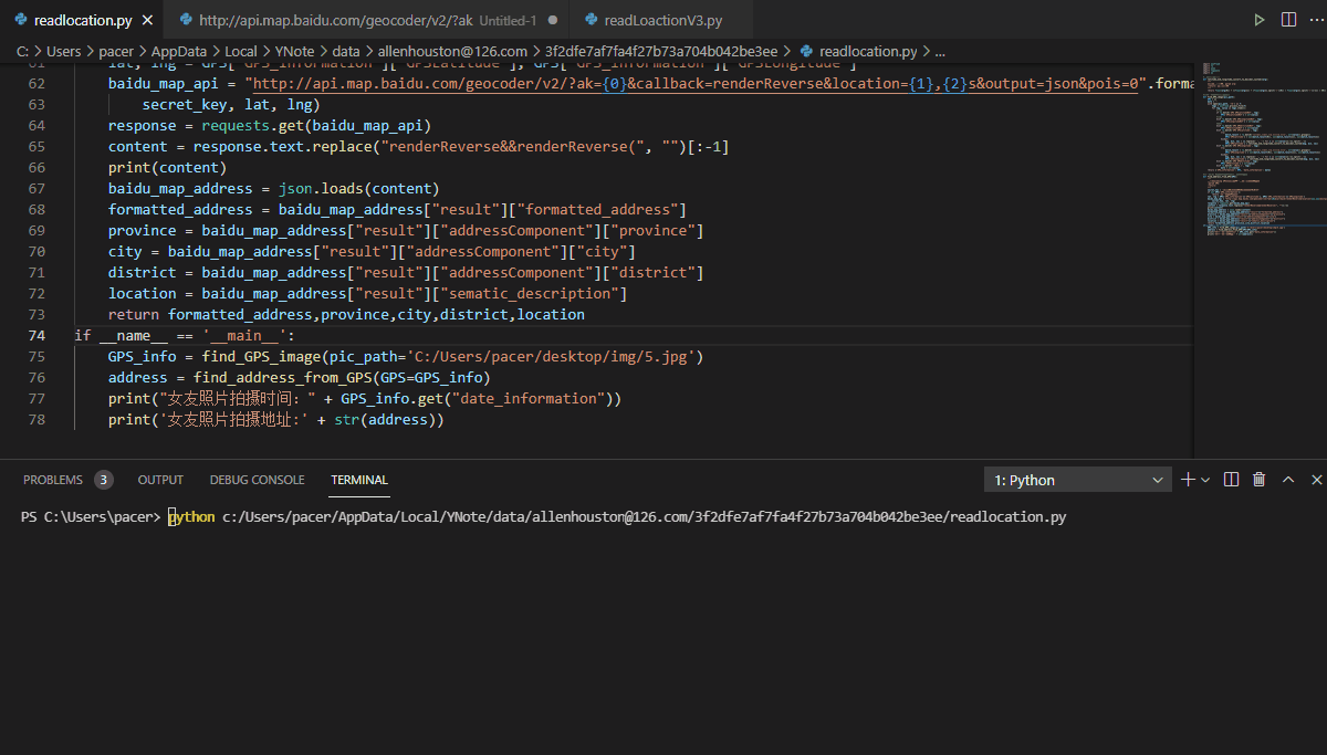 下面是通過exifread模塊,來讀取照片內(nèi)的經(jīng)緯度信息。