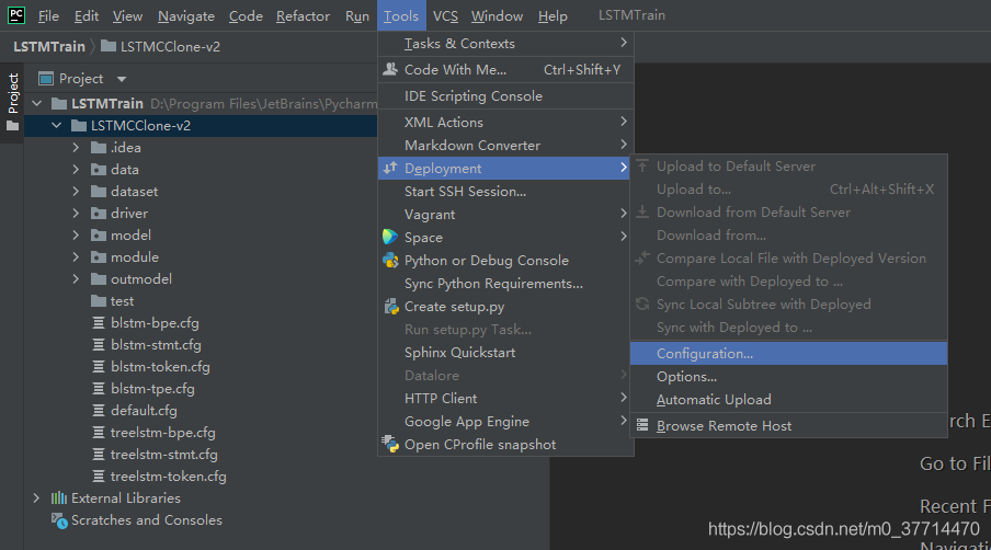 我的本地項目地址為:D:\Program Files\JetBrains\PycharmProjects\LSTMTrain