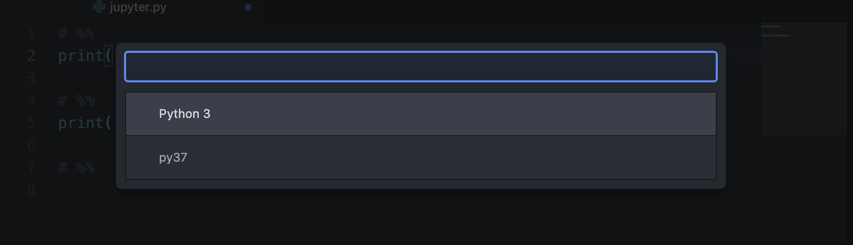 然后再第2行末尾按ctrl+enter就會自動彈出來讓你選擇環(huán)境的彈窗,選擇剛剛新建的環(huán)境即可