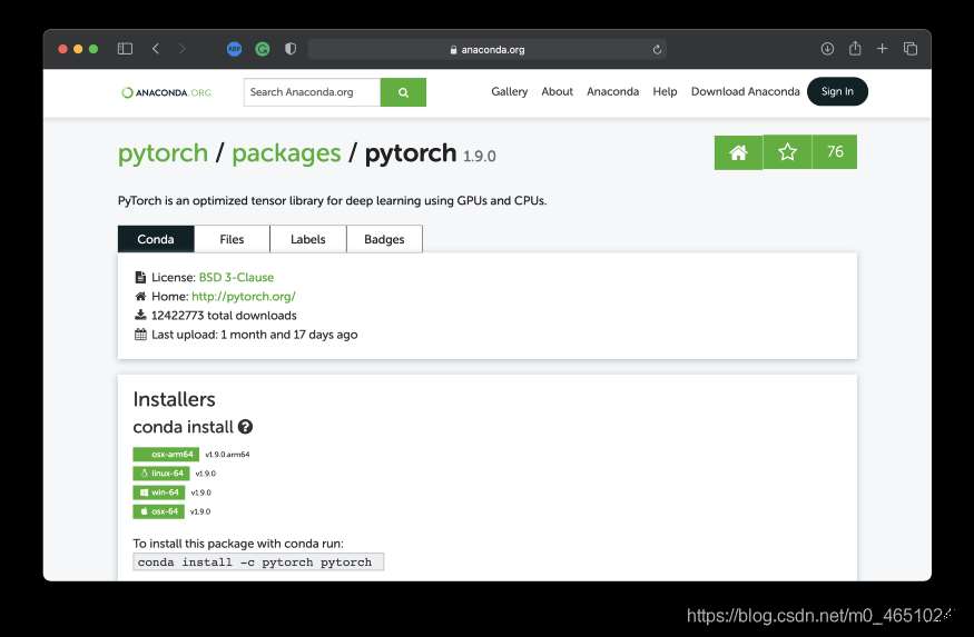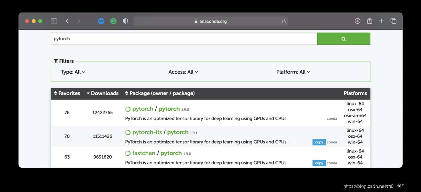 你可以在Anaconda的網(wǎng)站上找到一個(gè)原生的PyTorch包。你應(yīng)該在平臺下尋找osx-arm64,它告訴你它是M1兼容的: