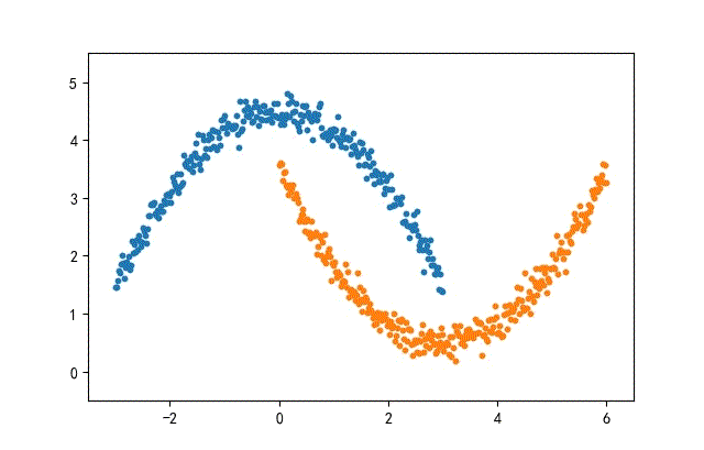 x1,y1 = make_moons(n_samples=datanum, noise=0.07, random_state=random.randint(0, 1000))