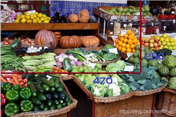 src[100,100]會獲取到三個值,分別對應的 BGR 通道的值。我們在圖片上標記一個像素點,rows = 250,cols=470 ,接下來修改上述代碼,看獲取到的 BGR 值。
