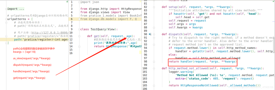 2)Django的路由系統(tǒng)會將提取的路徑參數(shù)傳遞到視圖的內(nèi)部