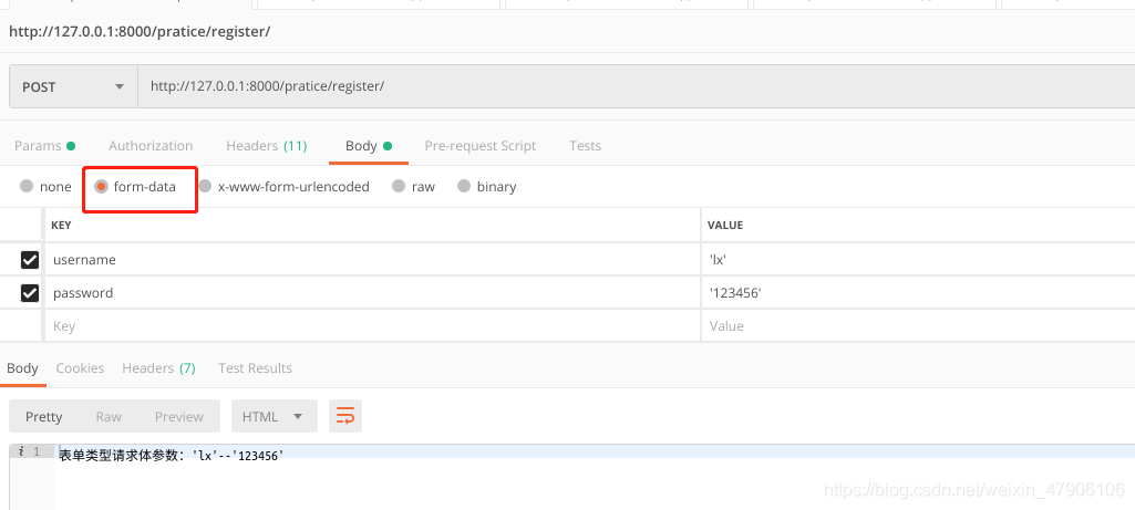 return HttpResponse('表單類型請求體參數(shù):%s %s' % (username, password))