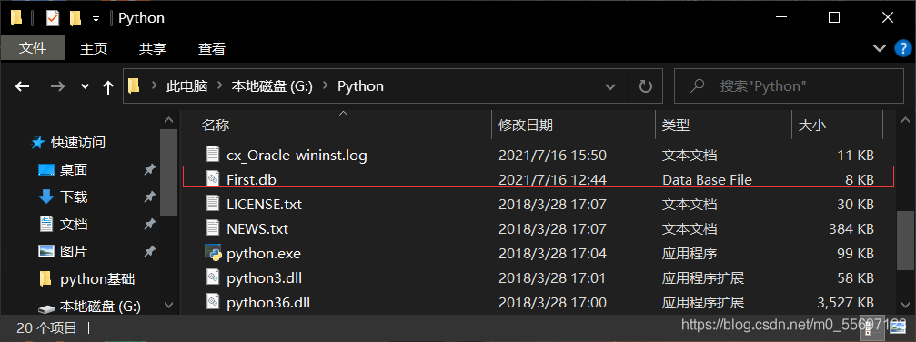 執(zhí)行代碼后,在python的安裝路徑下生成First.db文件。