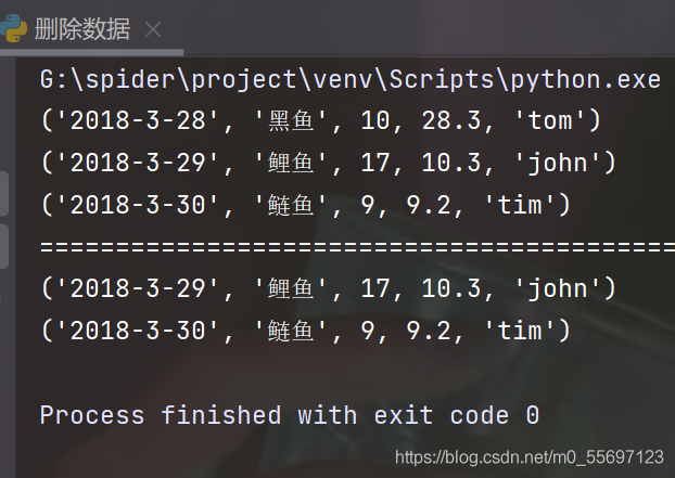 cur.execute("select * from T_fish") #對T_fish表執(zhí)行數(shù)據(jù)查找命令