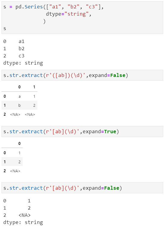 在上述案例中,expand參數(shù)為Fasle時(shí)如果返回結(jié)果是一列則為Series,否則是Dataframe。