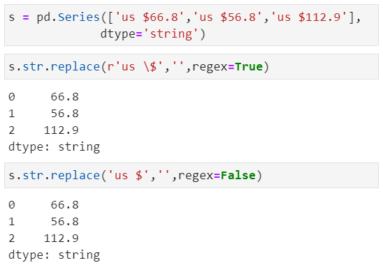 以上案例中,將regex參數(shù)設(shè)置為False就可以進(jìn)行字面替換而不是對(duì)每個(gè)字符進(jìn)行轉(zhuǎn)義;反之,則需要轉(zhuǎn)義,為正則替換。