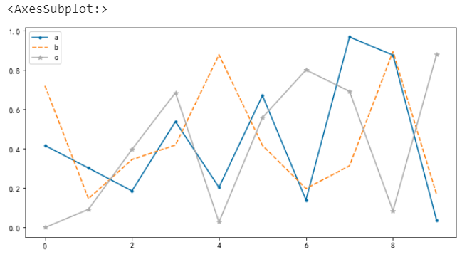 df.plot(style = ['.-','--','*-'] # 圓點(diǎn)、虛線、星星