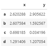 3 * np.random.rand(4, 2), index=["a", "b", "c", "d"], columns=["x", "y"]