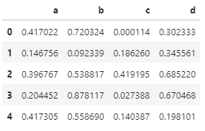 df = pd.DataFrame(np.random.rand(10, 4), columns=["a", "b", "c", "d"])