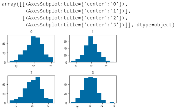 data.hist(by=np.random.randint(0, 4, 1000), figsize=(6, 4))